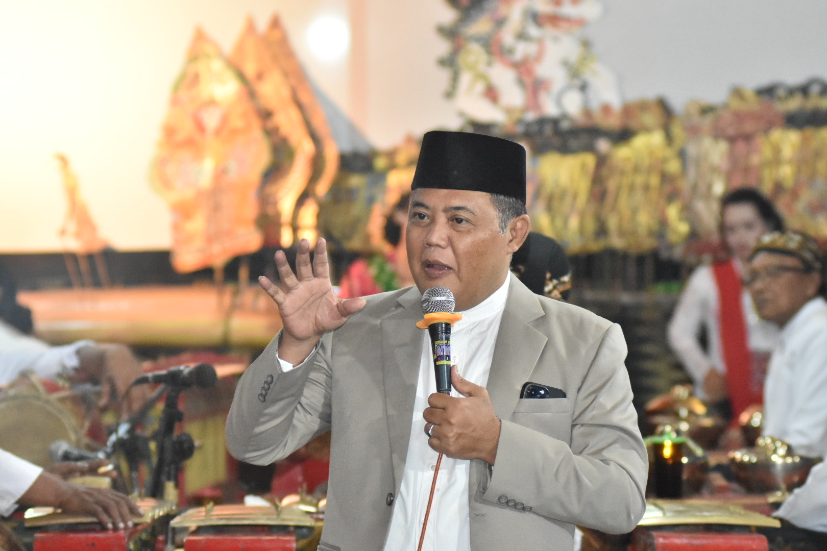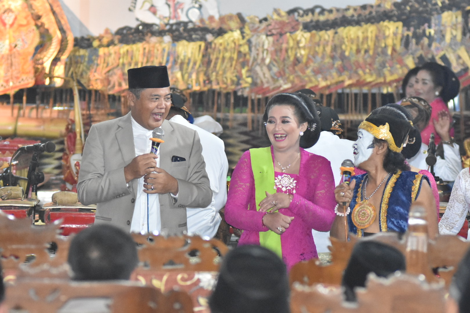 Karanganyar – Bupati Karanganyar, Drs. H. Juliyatmono, M.M, M.H, didampingi jajaran Kepala OPD terkait dan forkopimca menghadiri pergelaran wayang dalam rangka tasyakuran Kepala Desa Wonokeling, Kecamatan Jatiyoso, Minggu (01/01). Acara juga turut dihadiri oleh segenap kepala desa di Kecamatan Jatiyoso.