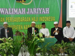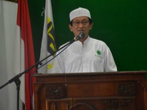 Sambutan Ketua IPHI Kab. Karanganyar saat acara Silaturahmi Kabar Jama’ah Haji Karanganyar serta Pengajian Maulid Nabi Mauhammad SAW di aula Gedung IPHI Karanganyar