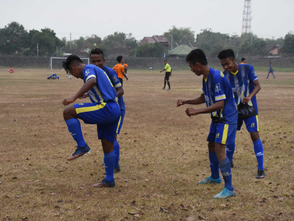 Para Pemain Persika Karanganyar melakukan selebrasi usai gol yang dicetak Gunawan di menit ke ’70 saat Persika berhasil menumbangkan Persibas Banyumas dalam lawatan partai kandang Piala Soeratin U-17