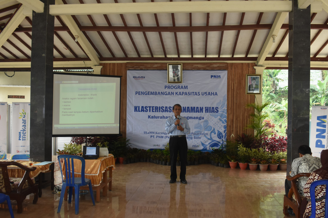 “Di Karanganyar termasuk daerah yang subur dan baik untuk mengembangkan tanaman hias. Saya berharap para Usaha Mikro Kecil Menengah (UMKM) berupa tanaman hias di Nglurah mengembangkan tanaman yang mempunyai nilai tinggi dan daya saing yang mumpuni,” papar Kepala Dinas Pertanian, Supramnaryo mewakili Bupati Karanganyar Juliyatmono dalam Program Pengembangan Kapasitas Usaha oleh BUMN Permodalaan Nasional Mandiri (PNM) di Balai Desa Nglurah, Kecamatan Tawangmangu, Selasa (18/06).