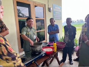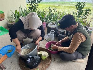 Selanjutnya, peserta juga mengikuti praktik pembuatan Pestisida Nabati berbahan buah maja, daun mindi, daun sirsak, daun brotowali, EM4, dan remahan tembakau. Prosesnya dilakukan dengan merebus bahan-bahan tersebut hingga mendidih, kemudian disaring dan disimpan dalam wadah tertutup selama satu minggu.