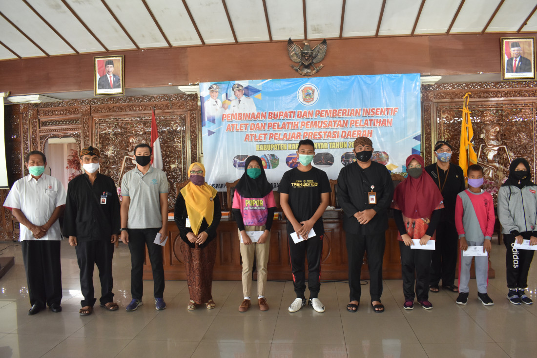Pembinaan Bupati dan pemberian insentif atlet dan pelatih pemusatan pelatihan atlet pelajar prestasi daerah berlangsung di Pendopo Rumah Dinas Bupati