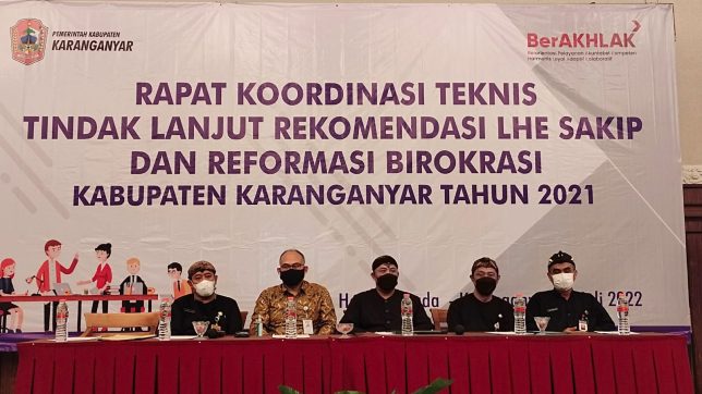 Sementara dalam Rakor Teknis Tindak lanjut Rekomendasi LHE SAKIP dan Reformasi Birokrasi Kabupaten Karanganyar tahun 2021 diikuti 100 peserta dari berbagai perangkat daerah di Karanganyar. Kegiatan ini merupakan upaya menindaklanjuti rekomendasi LHE SAKIP dan Reformasi Birokrasi.