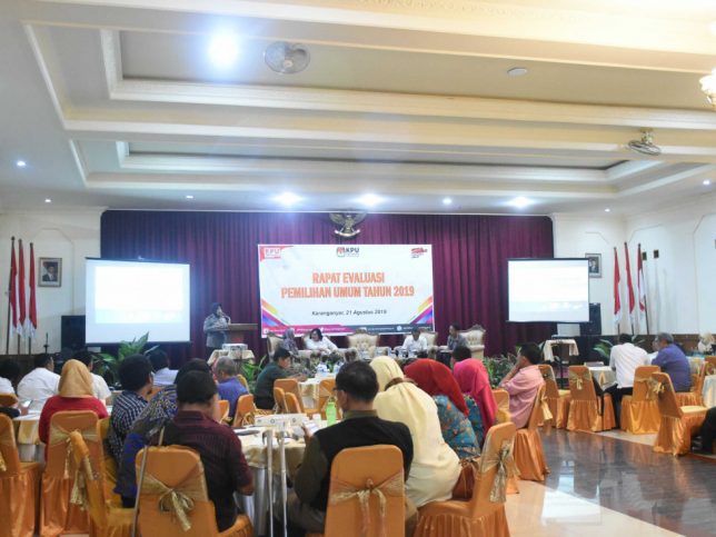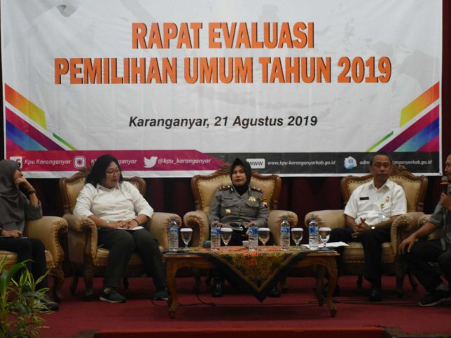 Komisi Pemilihan Umum (KPU) kabupaten Karanganyar gelar Rapat Evaluasi Penyelenggaraan Pemilu Tahun 2019 di Aula Hotel Taman Sari Karanganyar.