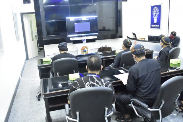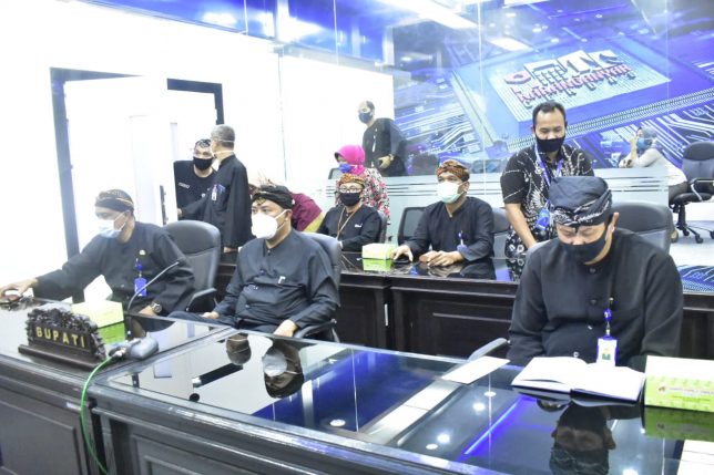 Bupati Karanganyar hadiri video conference dengan Otoritas Jasa Keuangan (OJK) di Ruang SIC Dinas Komunikasi dan Informatika Kabupaten Karanganyar