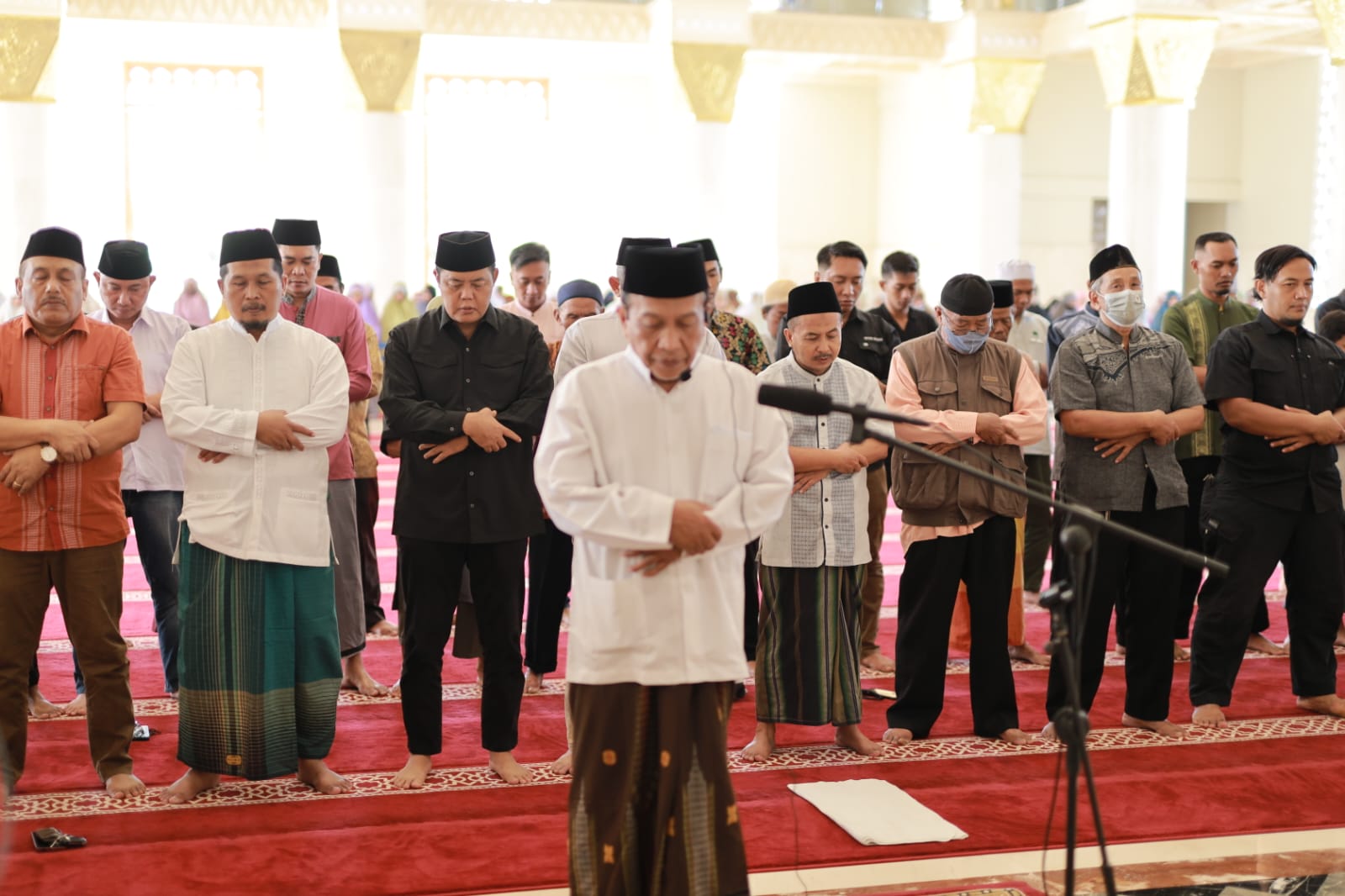 Jamaah silih berganti berdatangan ke Masjid Agung Madaniyah sejak pukul 09.00.