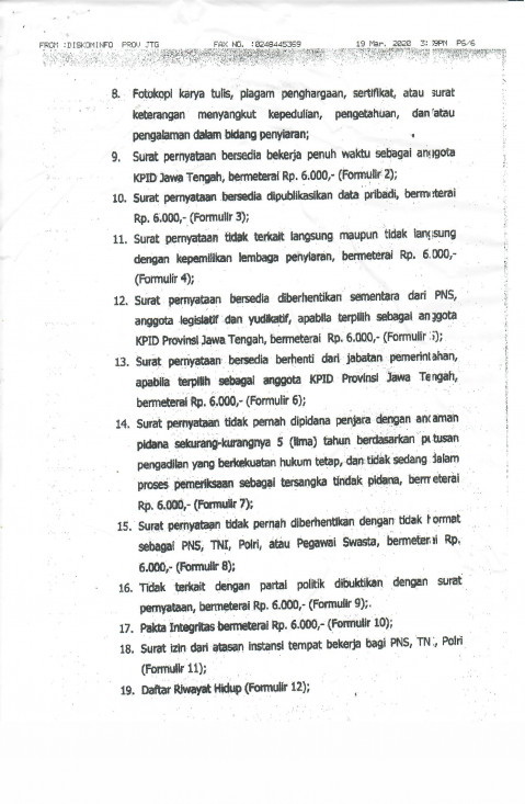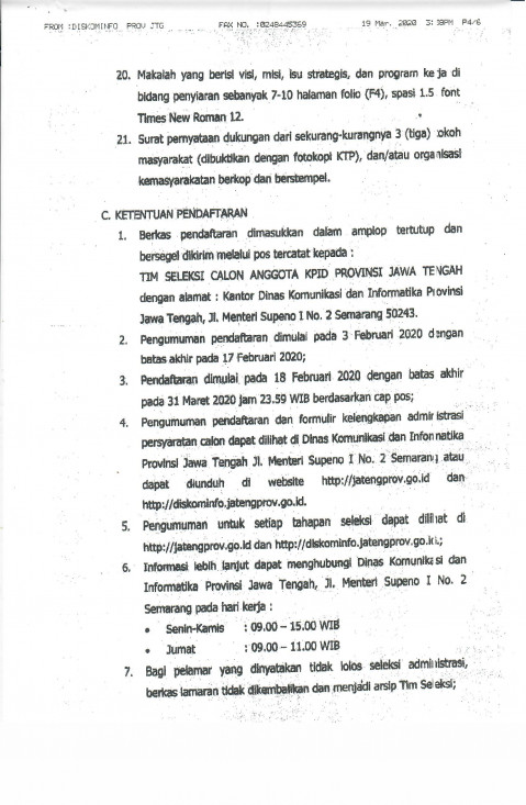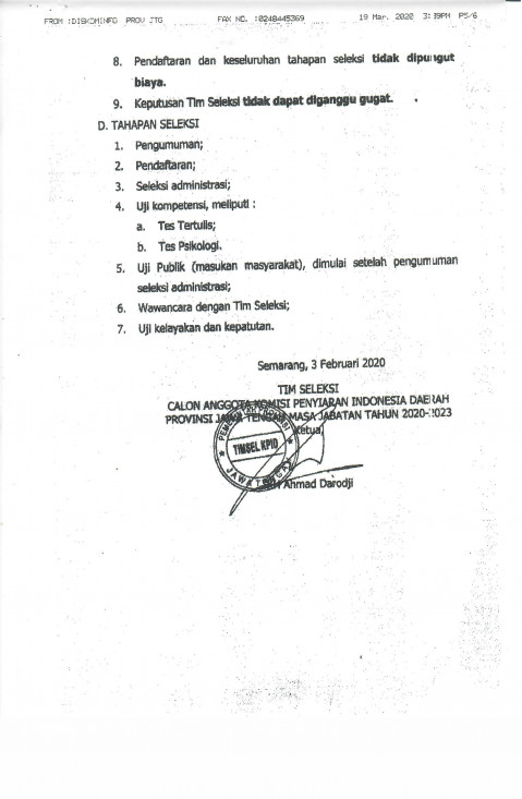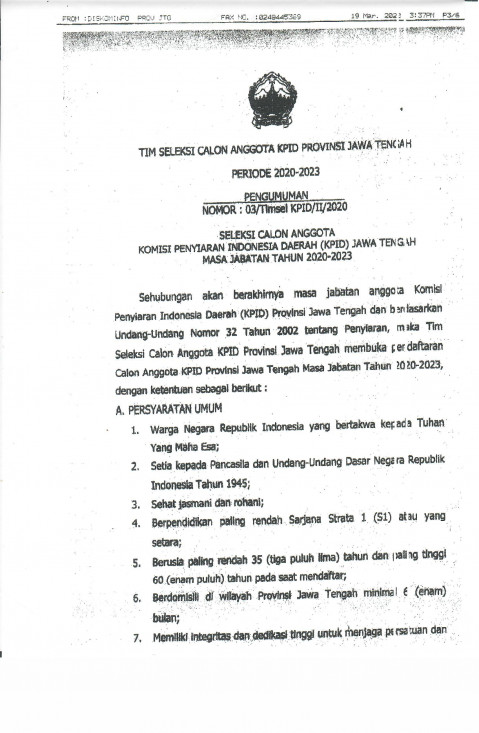 Seleksi Calon Anggota Komisi Penyiaran Indonesia Daerah (KPID) Jawa Tengah Masa Jabatan Tahun 2020-2023