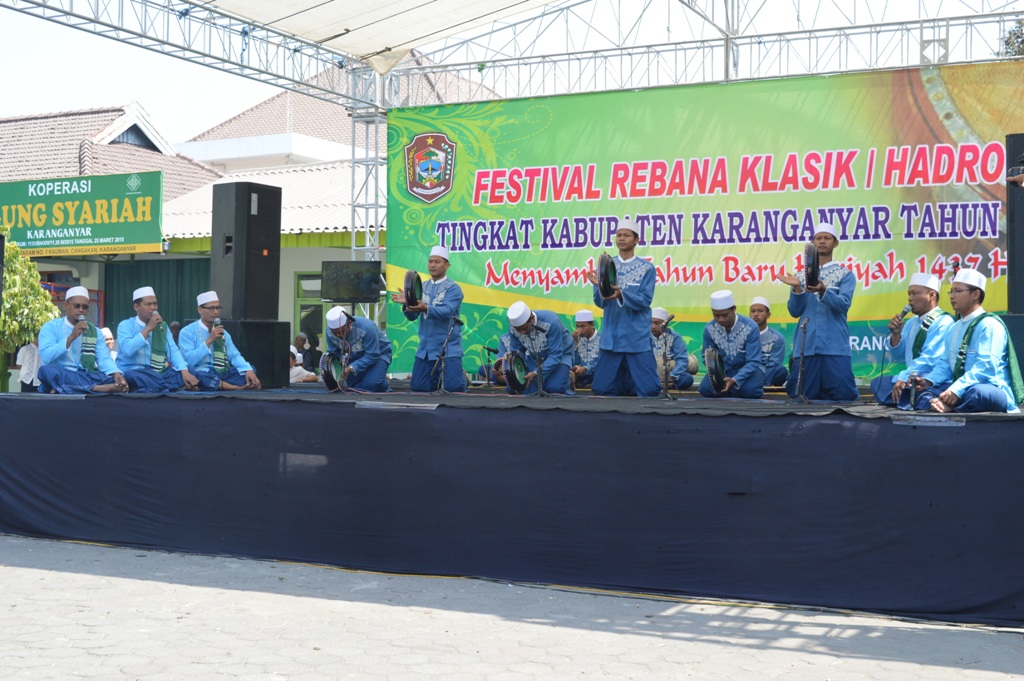 Asisten Perekonomian Setda Karanganyar Siti Maesyaroh selaku yang mewakili Bupati Karanganyar membuka acara tersebut. Dalam sambutannya berharap dengan dihelatnya festival rebana ini dapat menambah semangat dan kreatifitas kita dalam memeriahkan datangnya tahun baru 1437 Hijriyah. Ini merupakan salah satu wujud melaksanakan program Pemerintah Kabupaten Karanganyar yakni peningkatan kulitas keagamaan, sosial dan budaya.