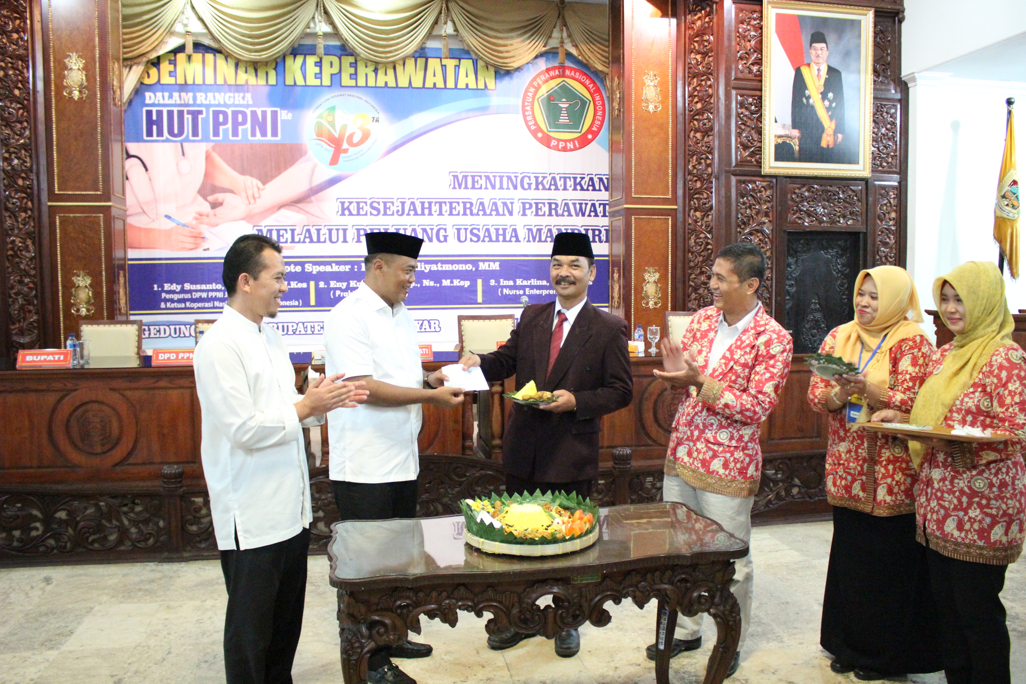 Seminar ini dihadiri oleh Bupati Karanganyar, Juliyatmono , Wakil Bupati, Kepala Dinas Kesehatan Kabupaten Karanganyar, Direktur RSUD Kabupaten Karanganyar, Direktur RS TNI AU Karanganyar, Direktur RS PKU Muhammadiyah, dan Ketua Dewan Pengurus Daerah dan Dewan Pertimbangan PPNI Kabupaten Karanganyar beserta seluruh jajaran pengurus.