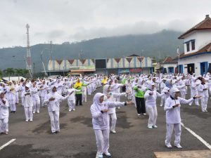 Senam Massal dalam rangka memperingati Hari Ibu di Terminal Wisata Kemuning, Sabtu(22/12).