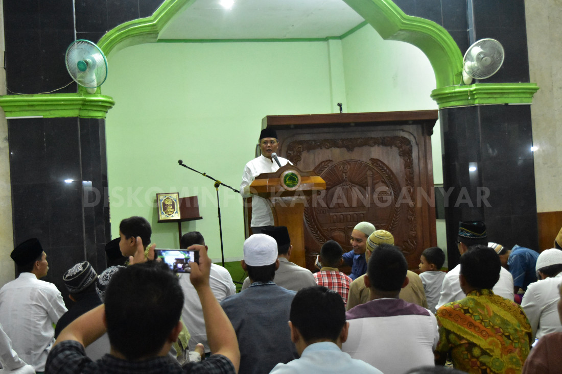 Bupati Karanganyar memberikan sambutan dalam acara Sholat Gerhana di Masjid Agung Karanganyar admin utama1 March 28, 2018