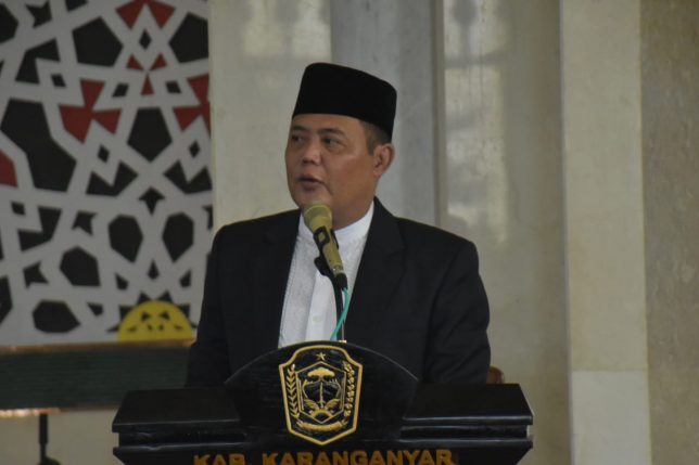 Bupati Karanganyar saat khotbah dihadapan ribuan jamaah