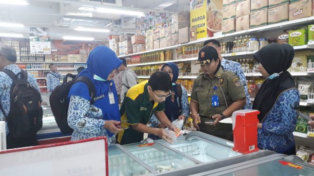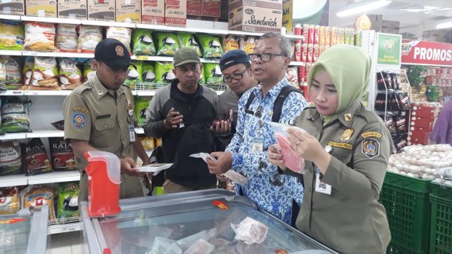 Inspeksi mendadak (Sidak) tim Dinas Kesehatan Kabupaten (DKK) bersama Satpol PP dan Dinas Perdagangan Perindustrian Koperasi UMKM Karanganyar di Pasar Palur dan Swalayan Giant..