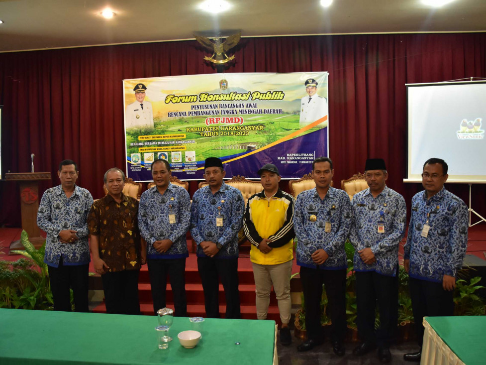 Pemerintah Kabupaten Karanganyar menggelar Forum Konsultasi Publik mengenai Penyusunan Rancangan Pembangunan Jangka Menengah Daerah (RPJMD) tahun 2018-2023 di Hotel Tamansari, Kamis (17/1). Dalam kegiatan ini selain memaparkan rencana program pembangunan, Pemkab juga siap menampung masukan dari masyarakat.