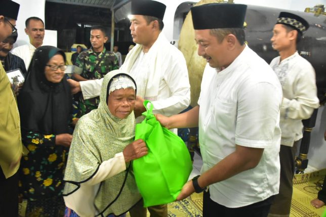 Bupati, Wakil Bupati Karanganyar, dan Forkompinda memberikan paket sembako kepada para lansia dan anak-anak yatim piatu.