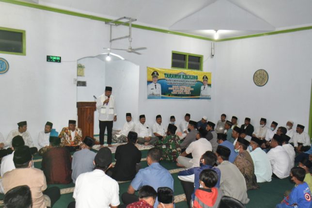 Karanganyar – Bupati Karanganyar, Drs. H. Juliyatmono, MM dan Wakil Bupati Karanganyar, H. Rober Christanto, MM didampingi jajaran kepala OPD dan Tim Tarling Kabupaten Karanganyar melaksanakan tarawih keliling di Masjid Baitussalam, Desa Sidomukti, Kecamatan Jenawi, Senin (12/04).