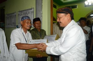 Pjs Bupati Karanganyar Prijo Anggoro Budi Rahardjo serahkan bantuan saat Taraweh Keliling di Masjid Bazis, Balong, Jenawi.
