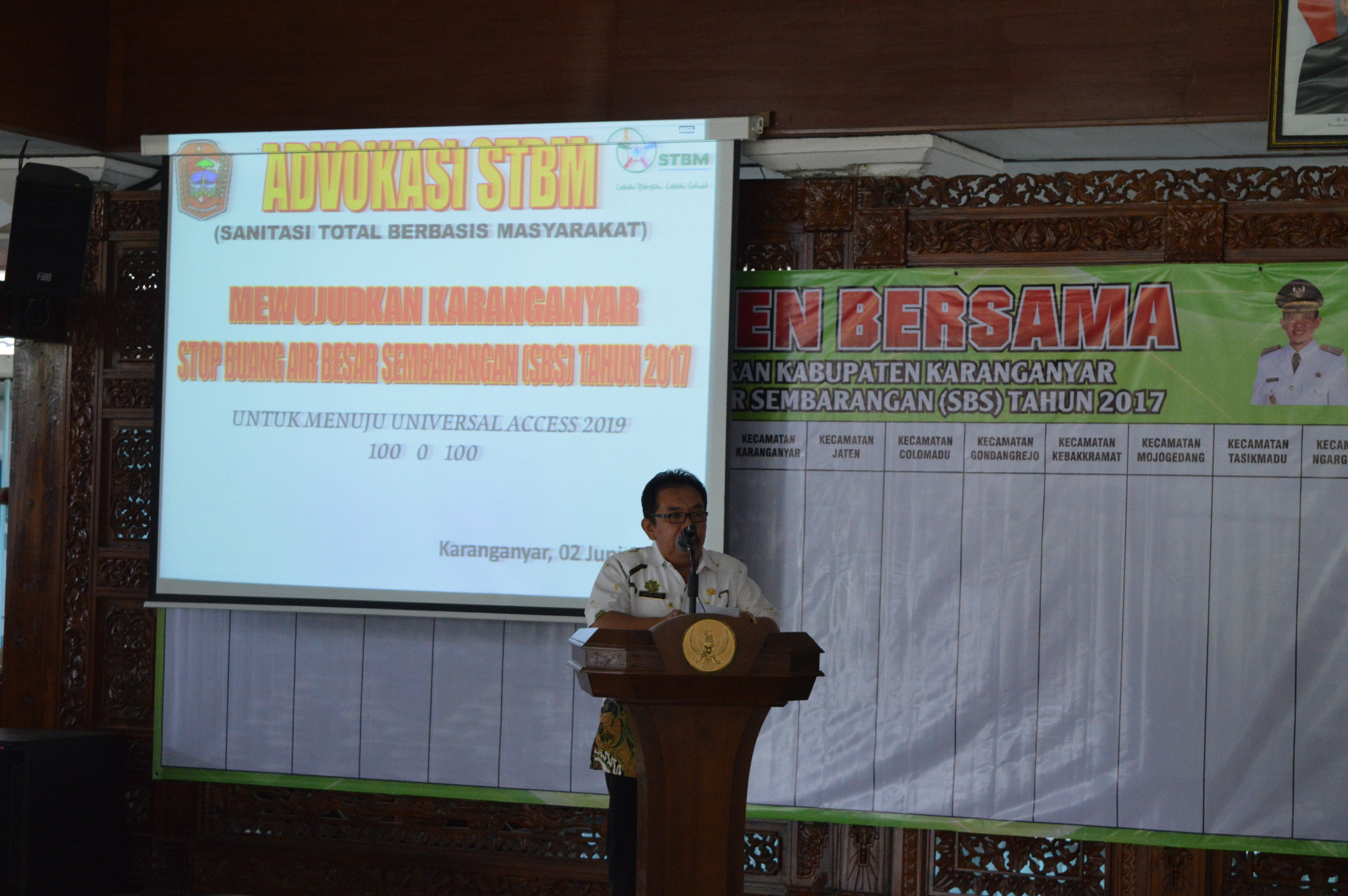 Fatkul Munir selaku Panitia penyelenggara Dinas Kesehatan Karanganyar dalam laporannya menyampaikan berdasarkan hasil monitoring akses sanitasi yang dihimpun untuk Dinas Kesehatan Karanganyar sampai dengan Tanggal 22 Mei 2016, akses rumah tangga terhadap jamban sehat sebanyak 96,07 atau 251.197 Kepala Keluarga (KK) dan menduduki urutan ke-6 (enam) teratas dari 35 Kab/Kota yang ada di Propinsi Jawa Tengah. Desa yang sudah SBS/ODF terverifikasi sebanyak 41 Desa (232 persen), Kecamatan yang sudah SBS/ODF sebanyak tiga (3) Kecamatan (17,6 persen).