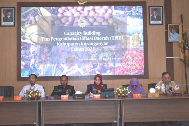 Karanganyar, Selasa (30/12/2025) Pemerintah Kabupaten Karanganyar melalui Tim Pengendalian Inflasi Daerah (TPID) menyelenggarakan kegiatan Capacity Building sebagai upaya memperkuat koordinasi dan kapasitas lintas sektor dalam pengendalian inflasi daerah guna menjaga stabilitas ekonomi dan kesejahteraan masyarakat Kabupaten Karanganyar.