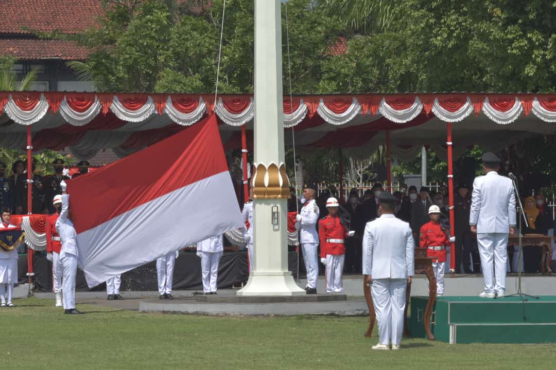KARANGANYAR– Pemerintah Kabupaten (Pemkab) Karanganyar melaksanakan Upacara Bendera Peringatan Detik Detik Proklamasi Kemerdekaan Republik Indonesia dalam rangka Hari Ulang Tahun (HUT) ke 77 Kemerdekaan RI yang bertempat di Alun Alun Kabupaten Karanganyar, Rabu (17/8/2022).