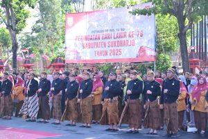 SUKOHARJO, Wakil Bupati Karanganyar, H. Adhe Eliana, S.E., hadir dalam Upacara Peringatan Hari Lahir ke-79 Kabupaten Sukoharjo yang digelar di halaman Setda Kabupaten Sukoharjo pada Selasa, 15 Juli 2025. Acara ini juga dihadiri oleh berbagai tokoh dan pejabat daerah, serta masyarakat Sukoharjo yang merayakan hari bersejarah tersebut.