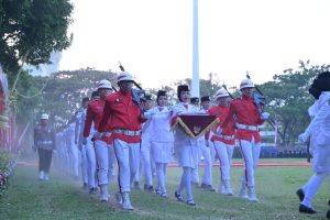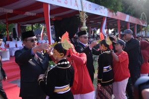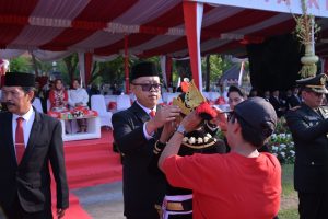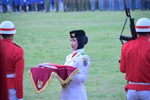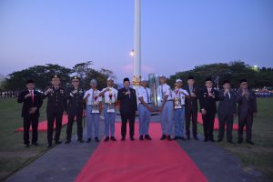 Bertindak sebagai inspektur upacara, Komandan Kodim 0727 Karanganyar, Letkol Kav Dhanang Prasetyo Kurniawan, S.H., M.H., M.Tr. Opsla, yang memimpin langsung jalannya prosesi penurunan Sang Saka Merah Putih yang dilakukan oleh Pasukan Pengibar Bendera Pusaka (Paskibraka) Kabupaten Karanganyar.