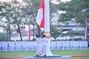 KARANGANYAR – Upacara penurunan bendera dalam rangka memperingati Hari Ulang Tahun (HUT) ke-80 Kemerdekaan Republik Indonesia diselenggarakan dengan khidmat dan meriah di Alun-alun Karanganyar pada Minggu, 17 Agustus 2025 sore.