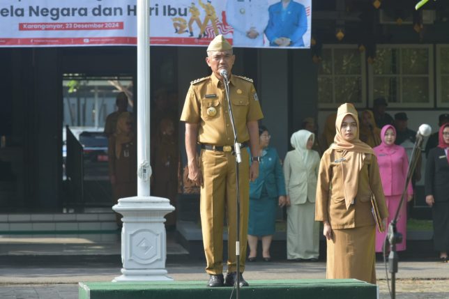 Karanganyar- Upacara peringatan Hari Bela Negara ke-76 dan Hari Ibu ke-96 tahun 2024 berlangsung di halaman Kantor Bupati Karanganyar, Senin (23/12) pagi. Bertindak sebagai Inspektur Upacara Pj Bupati Karanganyar Timotius Suryadi. Turut hadir jajaran Forkopimda serta seluruh Kepala OPD serta ibu – ibu peserta upacara dari berbagi instansi dan organisasi.