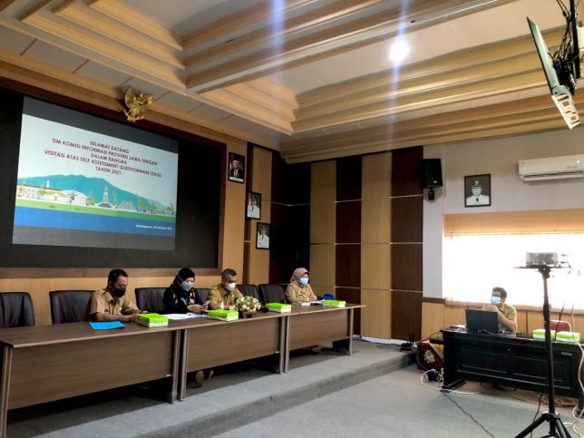 KARANGANYAR- Tim Komisi informasi Provinsi Jawa Tengah dalam rangka visitasi atas Self Assessment Questionnare (SAQ) tahun 2021 mengatakan Kabupaten Karanganyar masih dalam zona yang amat baik untuk Uji Publik.
