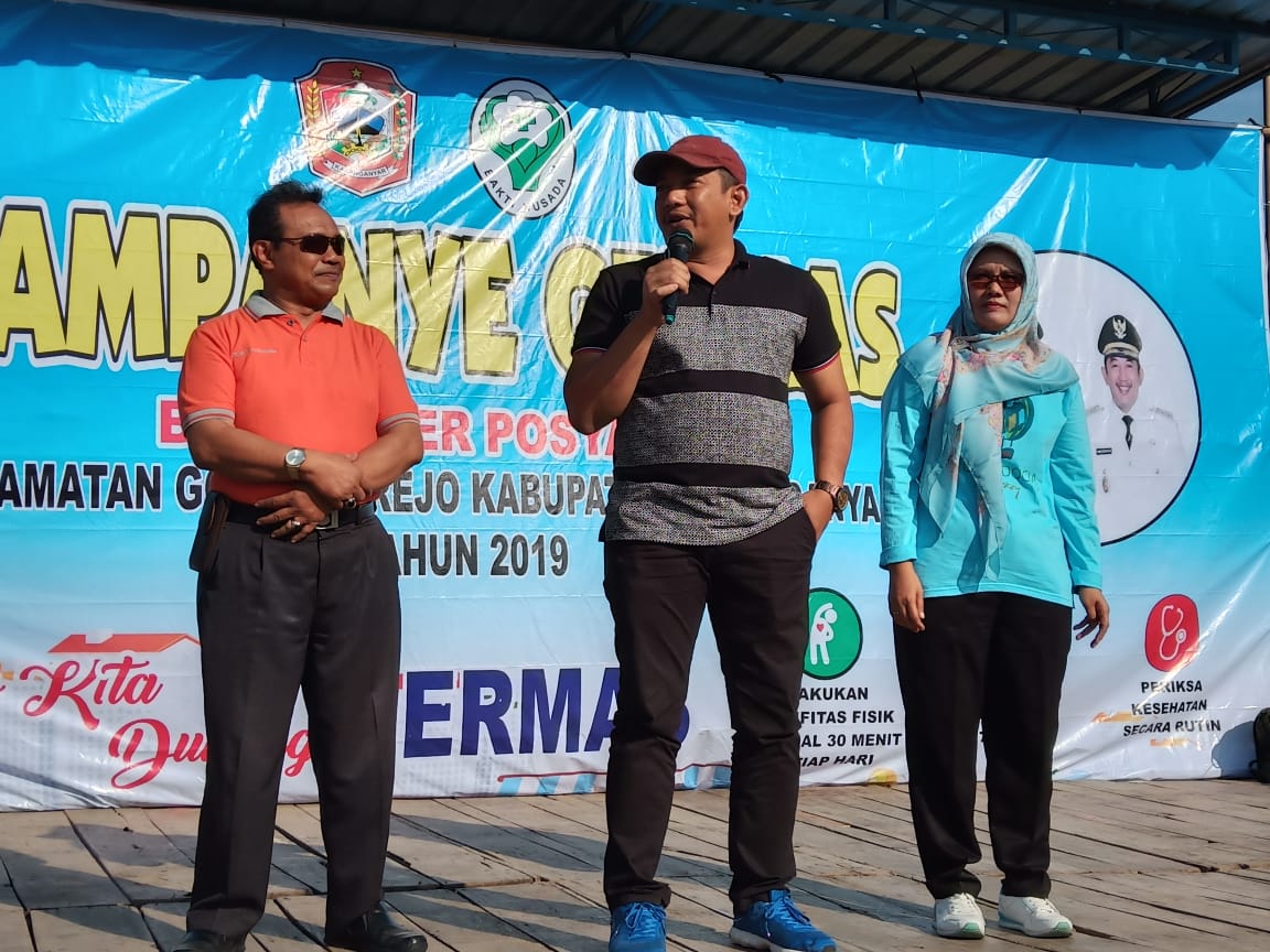KARANGANYAR- Wakil Bupati Karanganyar menghadiri kegiatan kampanye GERMAS ( Gerakan Masyarakat ) bagi kader posyandu kecamatan gondangrejo di lapangan desa tuban gondangrejo, Selasa (23/07).