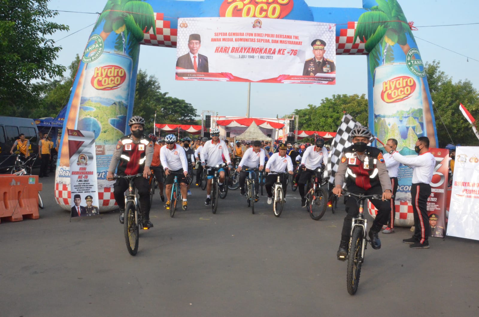 Informasi yang dihimpun sekitar 850 orang warga Karanganyar dari berbagai komunitas sepeda, masyarakat umum, TNI, Polri dan Forkompinda mengikuti sepeda santai berjarak 10 kilometer. Bersama masyarakat, Forkompinda menikmati santapan soto. “Saya mengucapkan selamat HUT Bayangkara ke 76. Rangkaian hari jadi ini dilakukan dengan gowes atau sepeda gembira. Hal ini tentu membuat raga menjadi sehat,” papar Wakil Bupati Karanganyar, Rober Christanto.