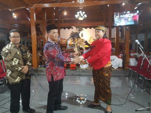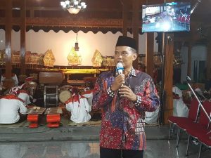 Keta DRPD H. Sumanto yang dalam hal ini mewakili Bupati Karanganyar saat memberikan pidato sambutannya dalam acara wayang kulit semalam suntuk di Desa Kragan Gondangrejo, Selasa(11,12).