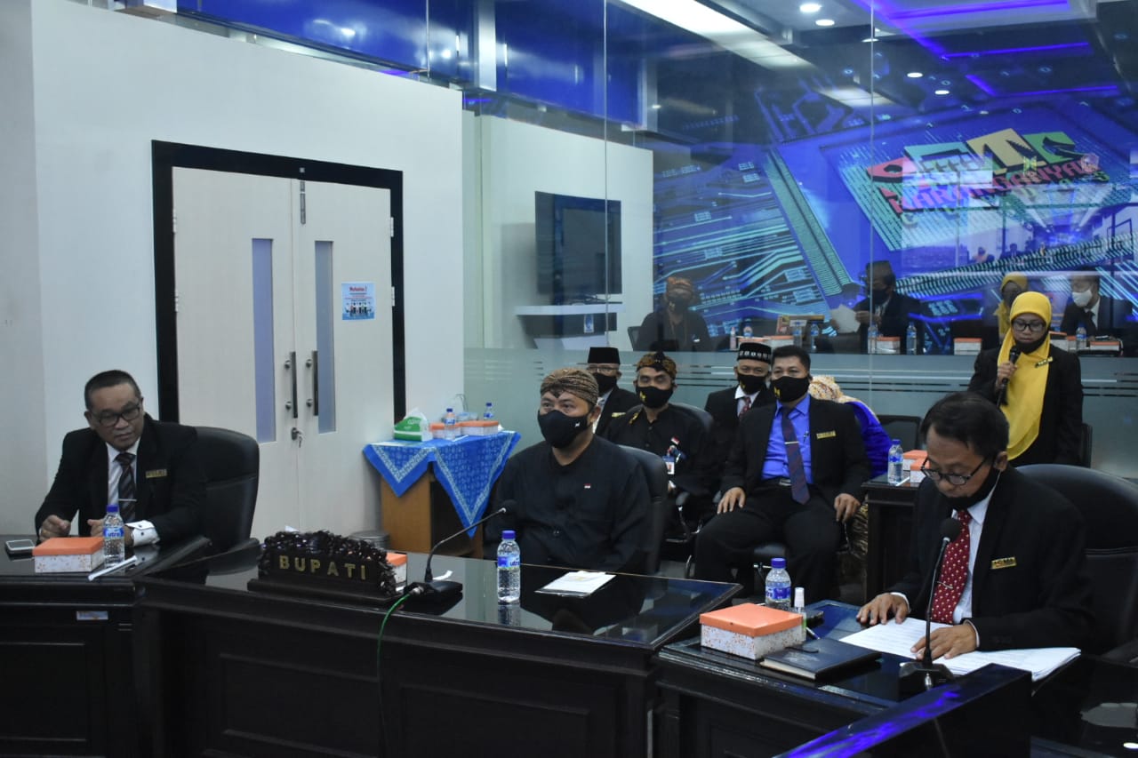 Bupati Karanganyar, Juliyatmono memberikan pemaparan saat menjadi pembicara utama Webinar Penguatan dan Implementasi Nilai-nilai Pancasila sebagai Perekat dan Pemersatu Bangsa