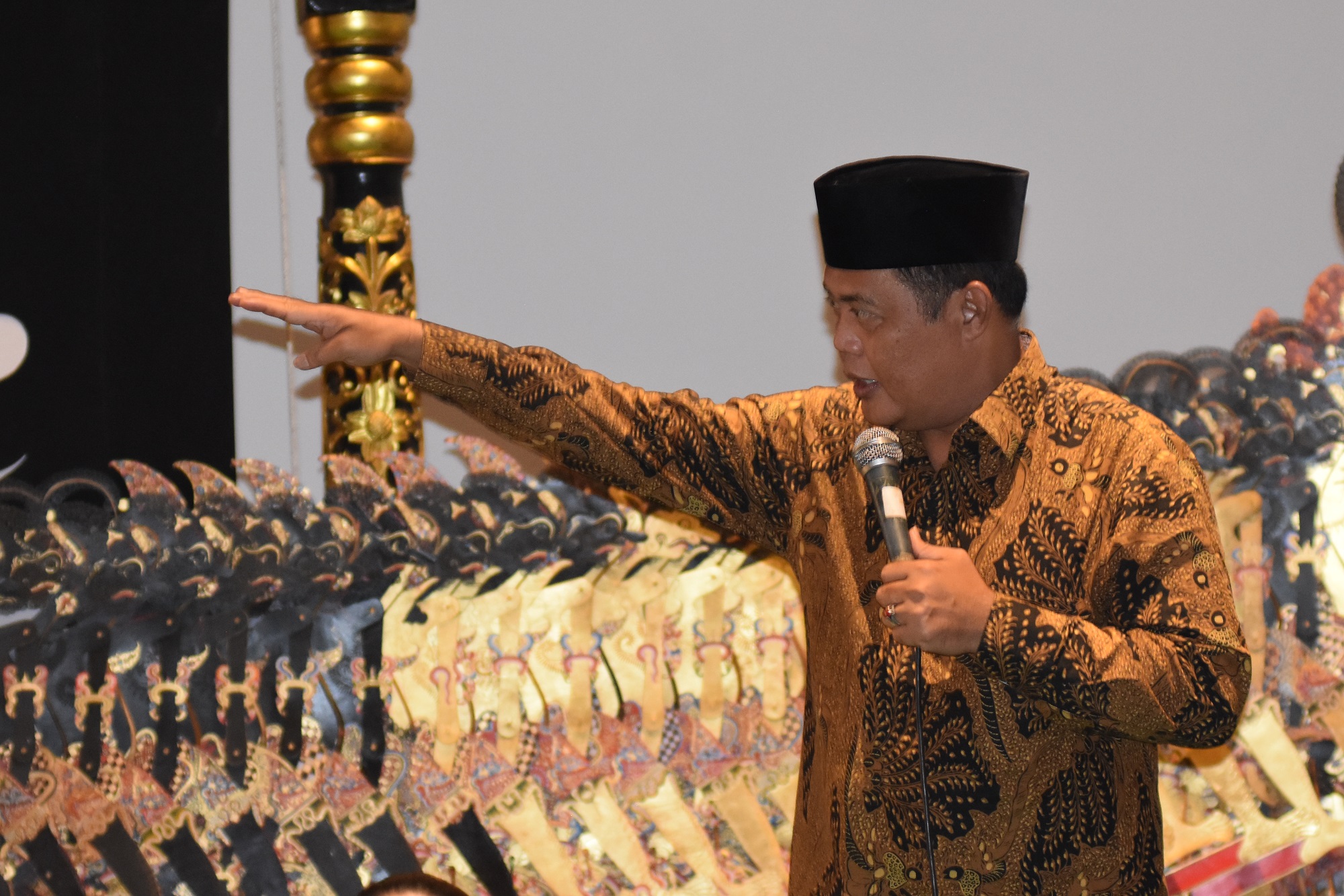 Karanganyar – Bupati Karanganyar, Drs. H. Juliyatmono, M.M, M.H menggelar tasyakuran atas berlangsungnya pernikahan putra tunggalnya, Ilyas Akbar Almadani, S.I.P, M.M di Gedung Kebudayaan Karanganyar, Minggu (08/12). Pergelaran wayang dengan Lakon Wisnu Krama ini didalangi oleh Dr. Warseno Slank.